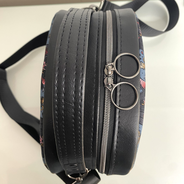 Handmade cotton canvas/ faux leather handbag with both a top handle and an adjustable crossbody strap. The interior of this handbag includes both a zip and slip pocket, providing space for all of your essentials.