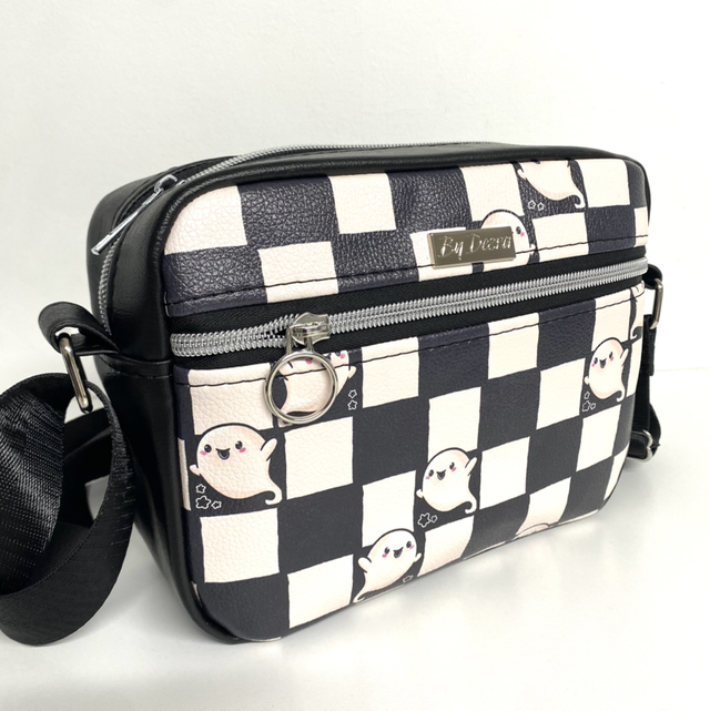 Handmade faux leather crossbody bag. This bag features an adjustable crossbody strap, an exterior zip pocket for easy access and two interior slip pockets to keep your essentials organized. Perfect for all occasions.