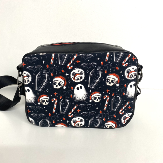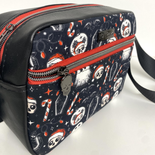 Handmade faux leather/cotton canvas crossbody bag. This bag features an adjustable crossbody strap, an exterior zip pocket for easy access and two interior slip pockets to keep your essentials organized. Perfect for all occasions.