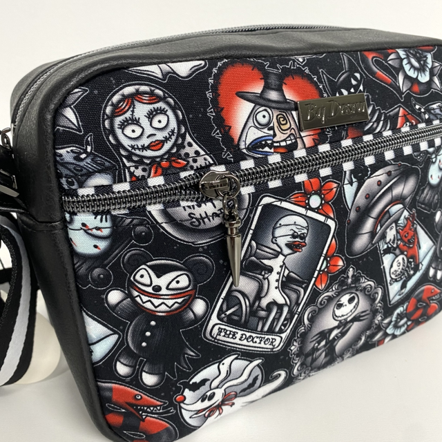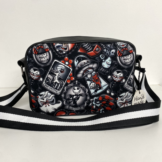 Handmade faux leather/cotton canvas crossbody bag. This bag features an adjustable crossbody strap, an exterior zip pocket for easy access and two interior slip pockets to keep your essentials organized. Perfect for all occasions.