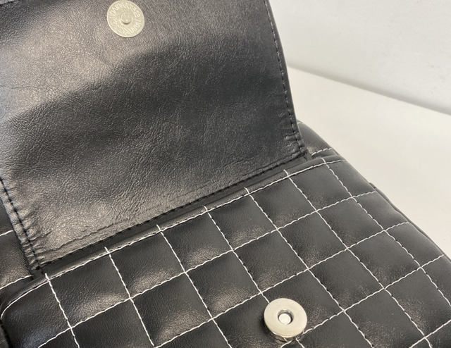 Handmade faux leather quilted handbag. This bag features a top handle and adjustable crossbody strap for versatile carrying, along with a front pocket with flap and bat applique giving easy access to your essentials. The interior includes a zip pocket and two slip pockets to keep your belongings organized.